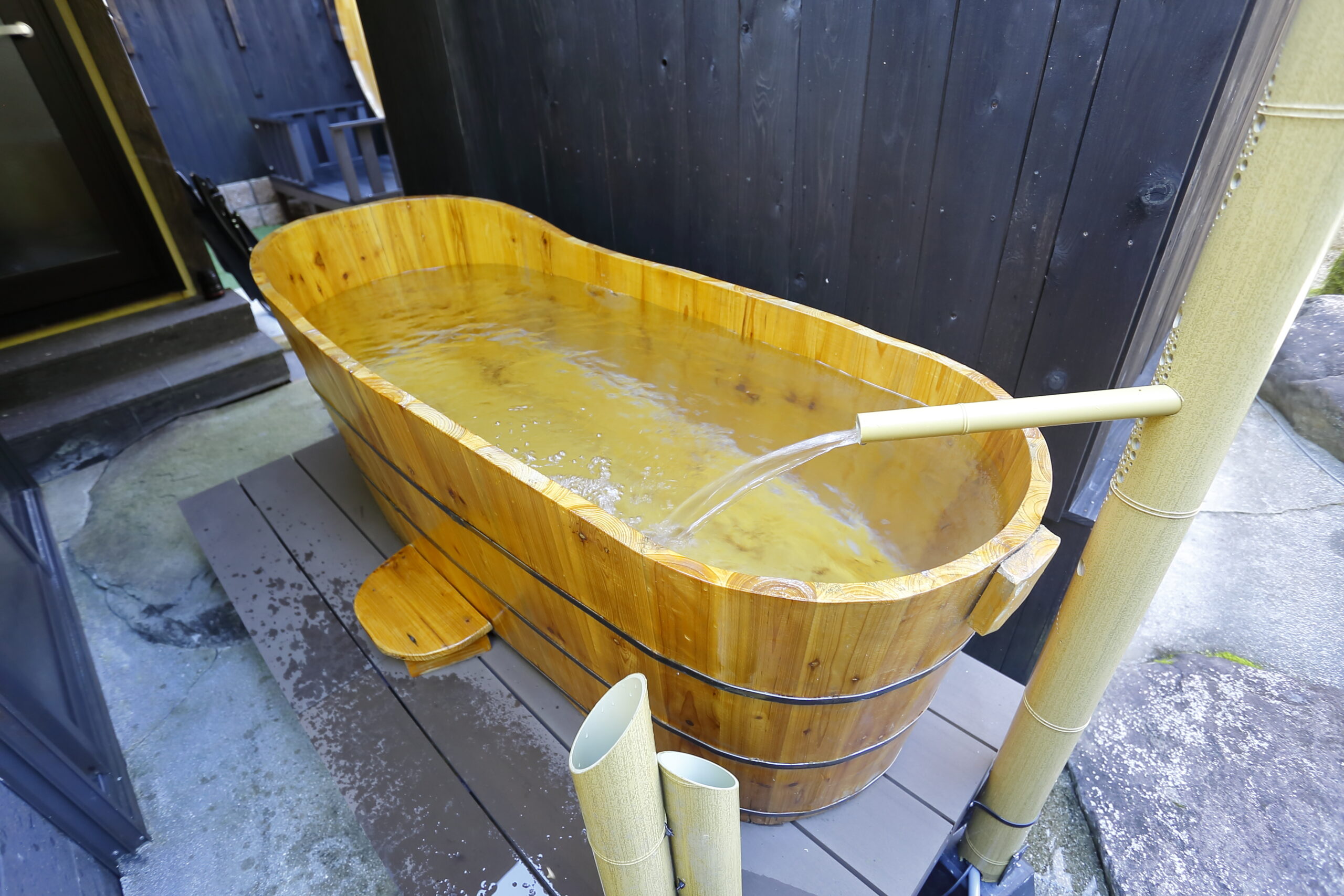 温泉は、各お部屋の露天風呂でお愉しみいただけます。